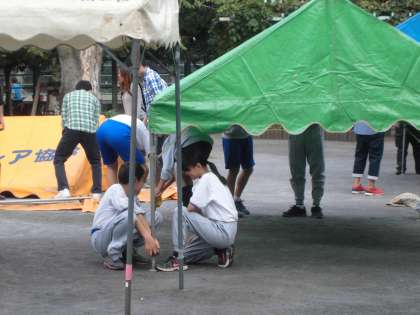 本校のJRC部の生徒が朝から準備のお手伝いをがんばっています。