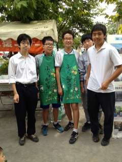 JRC部2年生男子は5名で参加しています。東北の物産コーナーで、果物やゆべしなどを販売しています。とても元気よくがんばっています!(西川)