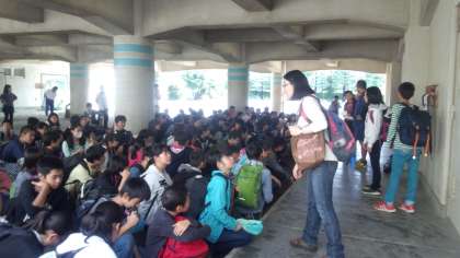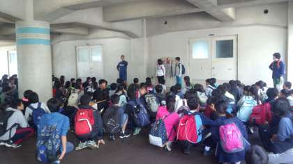 集合時刻が待ちきれないように、早めに集まることができました。台風の被害等もなく、みんな元気です。