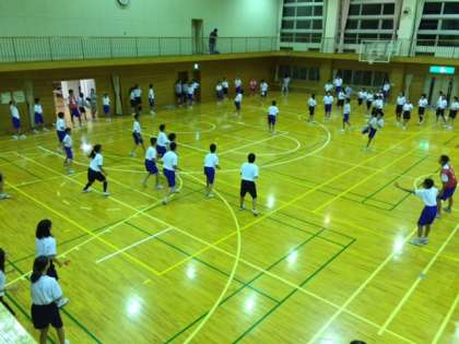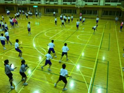 次はドッジボール! こちらもクラス対抗です。写真だとどちらがどのクラスかわかりづらいですが、A組対B組、C組対D組の試合です!