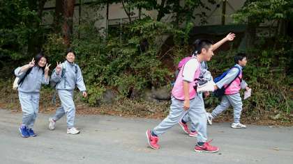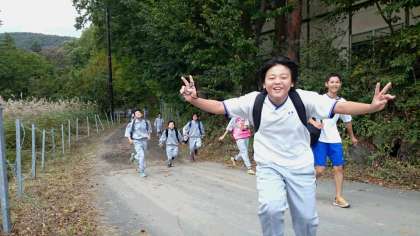 次々に通過していきます。生徒たちが近づいてくると元気な声がするのですぐにわかります。(副校長)