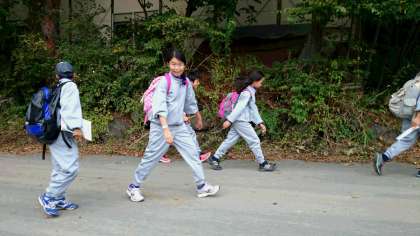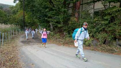 生徒たちはがんばっています。私の前を走って通りすぎて行きます。