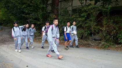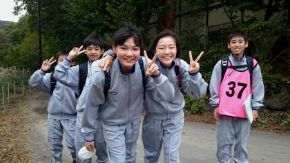 もうそろそろ最後の方の班が通過するころです。雲って寒くなってきました。(副校長)