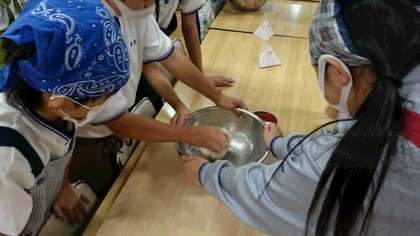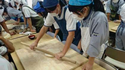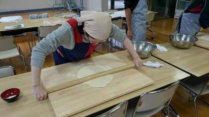 うどんづくり再開です。みんな真剣ですね。(副校長)