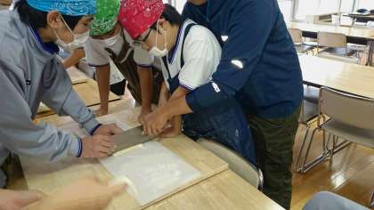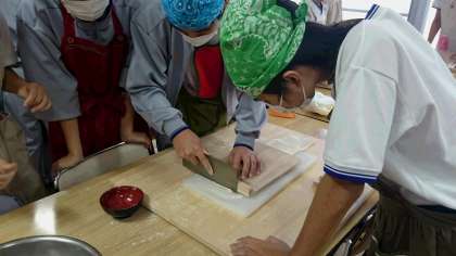 上手にうどんをつくることができました。このうどんを夕食で食べます。楽しみです。(副校長)
