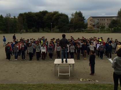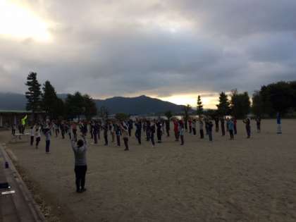 おはようございます! 朝礼です。みんなまだ眠そうにしています。(森川)