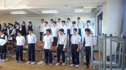 1時間目の音楽です。3年生の合唱は迫力があり、ていねいに歌い上げようと練習しています。さすがに3年生です。担任の先生方も、職員室で合唱について熱く語り、練習の時の映像を見ながらうれしそうにしています。学年の先生方のまとまりとそれぞれのクラスへの思いを感じて、とてもよい雰囲気です。