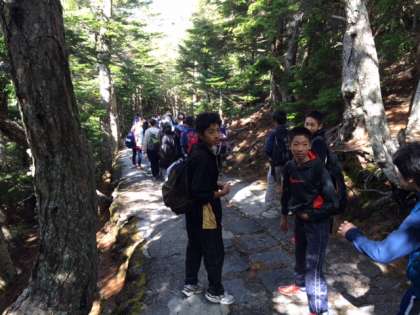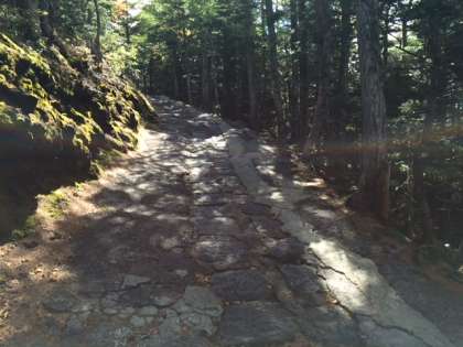 この道を降りると奥庭荘です。そこでお昼を食べて、またこの坂を登ります。