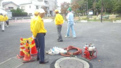 写真左は上馬駒沢明和会による「地域防災訓練」です。土曜授業のため中学生は残念ながら参加できませんが、小泉公園で毎年行われています。