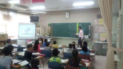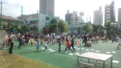 写真右は駒沢小学校の「こどもまつり」の様子です。萩野校長先生のお話では、こどもまつりは80周年の年から毎年行われている伝統ある行事だそうです。すごく盛況で、校庭いっぱいに活気があふれていました。