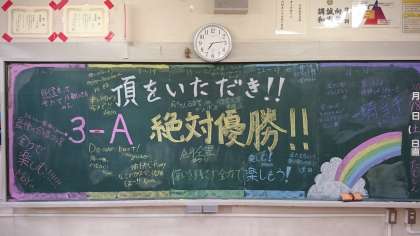 黒板や教室内にはそれぞれのクラスの合唱コンクールへの思いが描かれています。