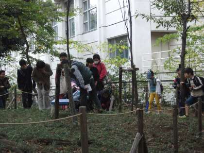 本日、弦巻小学校の児童がつるまき散歩で本校のタンチ山に訪れました。