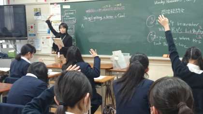 3年生英語では教科書のスピーキング教材を学習し、「伝言を残す」発表をしたり、慣用表現を復習したりしました。伝言の内容を自由に考え、表現力豊かに発表しました。迫真の演技でユーモアたっぷりのペアもいました。笑いあり、なるほど!とうなずく生徒もおり、理解力も向上しています。2学期のまとめとともに、定期考査直前の学習を進めています。(稲葉)