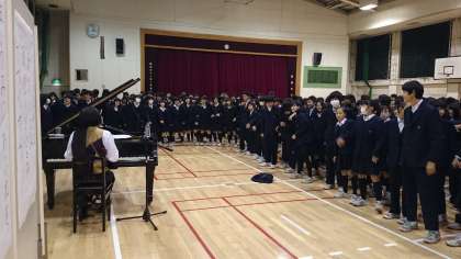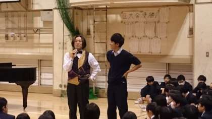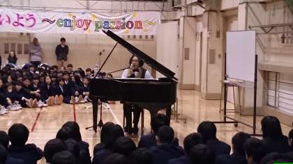 PTAの第3回家庭教育学級と合同で、音楽家の宮川彬良さんをお招きして、すばらしい演奏と楽しい講演をしていただきました。