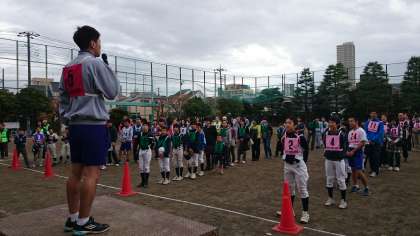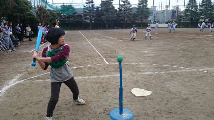本日、本校で地域交流ティーボール大会を行っています。