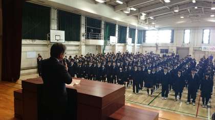 「1年生、中学校生活はあと2年間あります。でも、もう2年間しかないのです。残り3ヶ月で1年生のうちにしかできないことを、2年生になって後輩ができる前にやり遂げておきましょう。