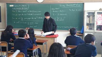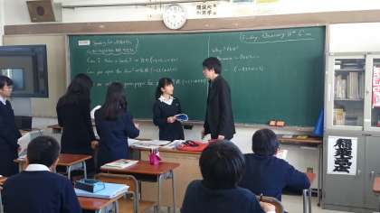 生徒たちの質問に丁寧に答え、生徒たちも意欲的に会話文をつくっていました。(副校長)