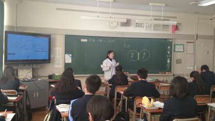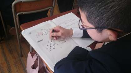 丁寧に前線や前線面について説明し、生徒たちは自ら図を記入しながら理解を深めていました。(副校長)