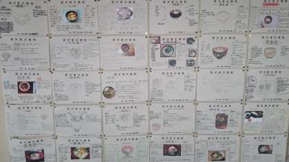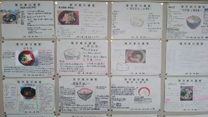 1年生の廊下には、家庭科の課題で作成した「お雑煮」のレポートが掲示されています。