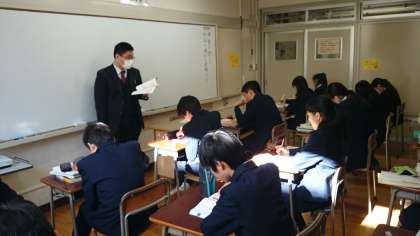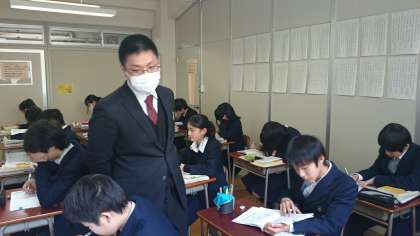 生徒は集中して問題集を解き、自分の考えを発言し、解説を聞いて、大切なポイントをしっかりと押さえていました。(副校長)