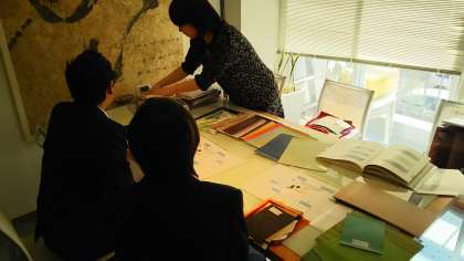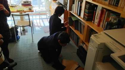 自分の好みの部屋のレイアウトを考えて、床や壁の色を選んでいます。(曽根)