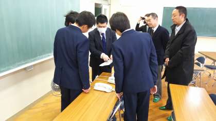 駒沢中学校に来て、災害時特設公衆電話の使い方を勉強していました。(曽根)