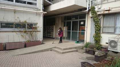 そして、その横では、学校主事の竹内さんが玄関をきれいにしてくれていました。(副校長)