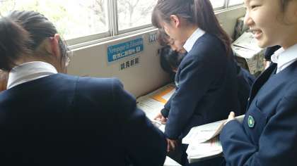 社会の試験で時事問題が出題されるらしく、朝からNIEコーナーが大盛況でした。
