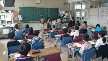 また、外国語活動の授業では、本校の英語の先生方も参加し、子どもたちと一緒にペアワークなどをしていました。(副校長)