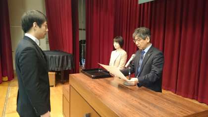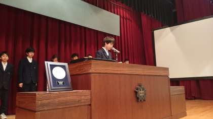 本日は代表で、校務主任の西川先生が賞状を受け取りました。(副校長)
