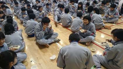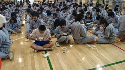 その後、炊き出し訓練として、PTAの方々がつくった美味しい豚汁とアルファ米を食べました。(副校長)