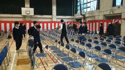 1年生は校内整備、2年生が会場準備をしてくれました。