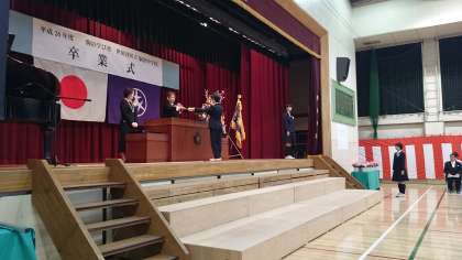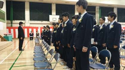 卒業式という節目に当たり、これまで自分を支えてくれた友達、先生方、たくさんの人たち、特に、ご家族の方々に「ありがとう」のことばと、これからの決意を伝えてください。そして、今、一人ひとりの胸の中にある感謝と決意、中学校の思い出のひとかけらを、これから毎年春風が吹くと同時に思い出して、いくつになっても、どこにいても、初心に返るきっかけとしてください。