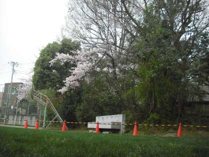 生徒のみなさんの活動を心待ちにしているかのように、タンチ山の桜が咲き誇り、芝生の緑も映えています。さあ新学期、がんばりましょう!(副校長)