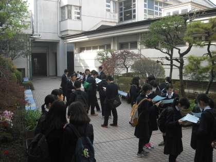 始業式に先立ち、登校して先生から新クラス発表の学年だよりをもらいました。みんな自分がどのクラスか興味津々の様子ですね。お互いの思いやりの気持ちで、このクラスでの一年間の生活を充実させたものとしていきましょう。(副校長)