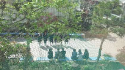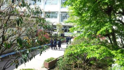 お昼休み、校長室で仕事をしていると、中庭からものすごく楽しそうな笑い声が聞こえて来て、思わず窓から外を見てみました。すると、3年生の女子たちが、明日の部活動オリエンテーションの出し物を練習しているところでした。とてもおもしろく、天気と同じで晴れやかな気分になりました。今年の3年生の女子は、すごく明るく素直な生徒たちです。