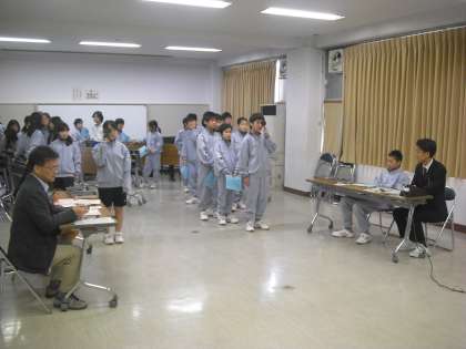 今日は1年生が計測です。校内の計測場所を自分たちでまわります。静かに移動と待機はできましたか?だんだんと中学校生活に慣れていってください。(副校長)