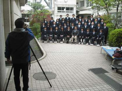 1年生もクラスごとの全体写真を撮りました。撮影の前に、あわててワイシャツの一番上のボタンをかける姿はとても初々しいですね。(副校長)