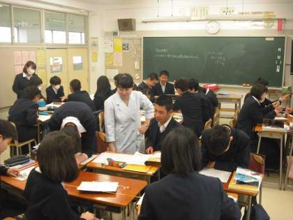 月曜日から授業が本格的にはじまっています。3年生の理科の授業は教室です。力のつり合いについて班に分かれて実験に取り組みました。二つの力がつり合っている状態とはどんな状態か考えプリントにまとめました。(副校長)
