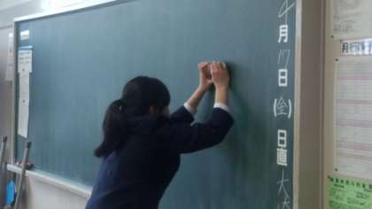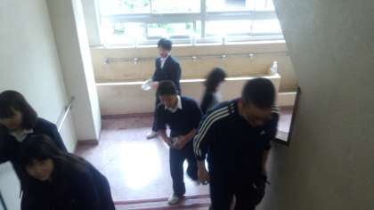 写真は2年A組の黒板そうじ(明日の授業のために念入りに拭いてくれています)と階段そうじ(終了報告の後、解散)の様子です。