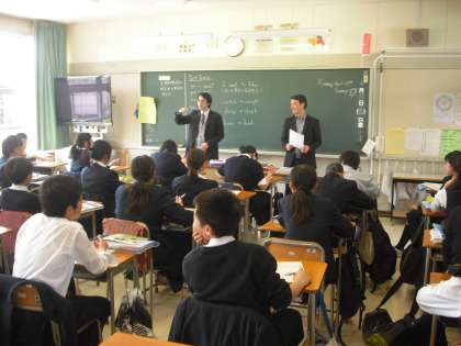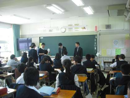 生徒の先生も休み時間中に授業の準備をし、時間通りに授業がはじまりましした。英語は少人数で実施しています。今日の2年生はALTの先生が入っていたり、板書に発表など授業の内容はバラエティがあります。2年生は授業にしっかり取り組んでいました。(副校長)