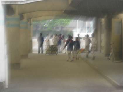 1年生も部活動に入部してきています。校舎内や校庭からは部活動のかけ声や楽器の音色などさまざまに響いています。今日は残念ながら天気が急変して一時雨宿りです。 (副校長)