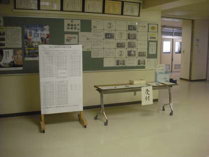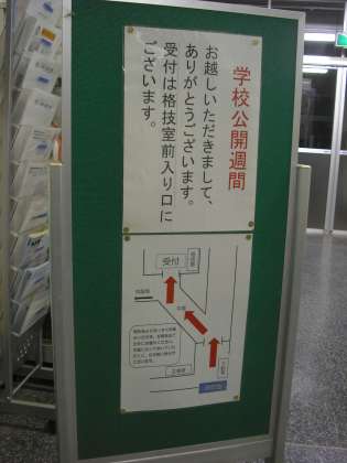 学校公開においでくださりありがとうございます。受付場所は格技室前入り口です。正面玄関にも案内掲示を用意いたしましたのでごらんください。また参観いただきましたらアンケートの記入にご協力ください。(副校長)