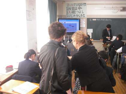 スウェーデンから本校のICTを使った教育活動の様子を見学しに来校しました。授業は2時間目の数学を見学して、ICTを活用する様子や生徒の学習に取り組む様子、そして教科書など興味深く見学されていました。。