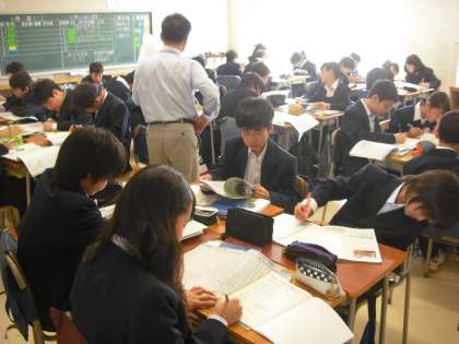 1年生の社会の授業は、資料集を見ながら国土や人口のリストをつくっていました。真剣に資料集をみてプリントに記入していました。資料の見方など、さまざまな生活の場面でつかえるといいですね。(副校長)