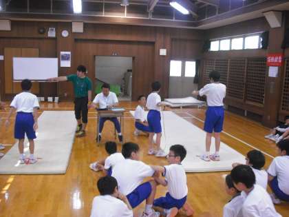 1年生男子の保健体育はスポーツテストで立ち幅跳びと上体起こしの計測です。自分のベストを発揮してがんばれたかな。また待機や用具の準備など協力してできましたか?集合など運動会にむけてしっかりがんばっていきましょう。(副校長)