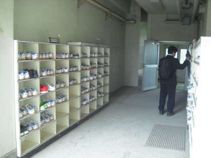 曇り空の朝、すでに登校している生徒がいる教室の灯りがついています。げた箱の上履きも持ち主を待っています。今日は第二土曜日です。また部活動保護者会、3年生は修学旅行説明会があります。保護者のみなさまのご来校お待ちしております。(副校長)
