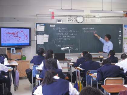エトナ火山の美しい写真、即時性あるネパールの被害の様子など、紹介されるとクラスのみんなは「うわー!」と思わず声を上げます。素直な感動から学習を深めていってくださいね。(副校長)