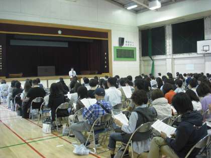 5月9日(土)部活動保護者会がありました。部活動担当の栗山先生から部活動規約についての説明、そして養護の菅野先生から、熱中症対策や活動中の怪我についての説明がありました。最後に各部活動の顧問紹介をいたしました。活動時間や持ち物、試合の応援など保護者の方にもご協力をお願いすることの説明もありました。どうぞ一年間よろしくおねがいいたします。(副校長)