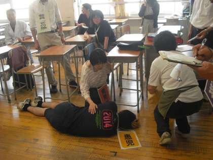 放課後に、アナフィラキシーショックによる研修会を行いました。DVDの視聴による対応訓練、エピペンの使用方法と練習のあと、教室でのシミュレーション訓練を行いました。訓練で出された課題に対して対応を確認して、生徒の一層の安全確保に努めます。(副校長)